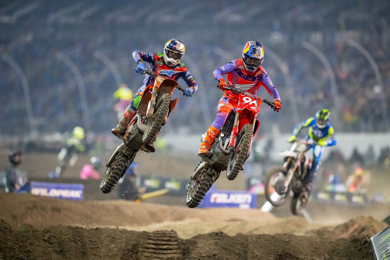 Nadie olvida esta noche, los que estuvieron presentes o los que la vieron por la app, todos recordarán con quién estaban, dónde y como fue todo. Eli Tomac ha levantado la vara de Daytona, ocho triunfos, nadie podrá superarlo o quizás ustedes creen que si ? Ricky Carmichael dijo «Ni siquiera he corrido 8 Daytonas, esto es increíble» Eli Tomac con su edad, se ha vuelto a enamorar de su moto y cuando ET está comodo sobre su moto, es candidato asegurado, la forma en que manejó la carrera es de película, espero el momento justo, analizó las líneas de Weeb, Hunter y Roczen y cuando se decidió superó a cada uno y se fue para hacer una diferencia, cosa nada fácil en un circuito tan rápido. Esta carrera será recordada por todos, Eli es el único rider que usa protector bucal y se rompió un diente en el podio ! La carrera tuvo cosas épicas !