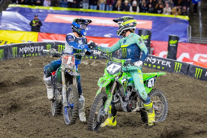 La rivalidad sumó un nuevo capítulo con cuatro intercambios por la punta en una batalla directa que hizo explotar al público de Seattle. A poco más de siete minutos del final, Deegan —entre rezagados— pareció dejarle el liderazgo a Kitchen. El piloto de Kawasaki llegó a sacar varios segundos de ventaja, pero la pista cada vez más rota y el tráfico complicaron todo. Ambos tuvieron pequeños errores y tomaron líneas alternativas.